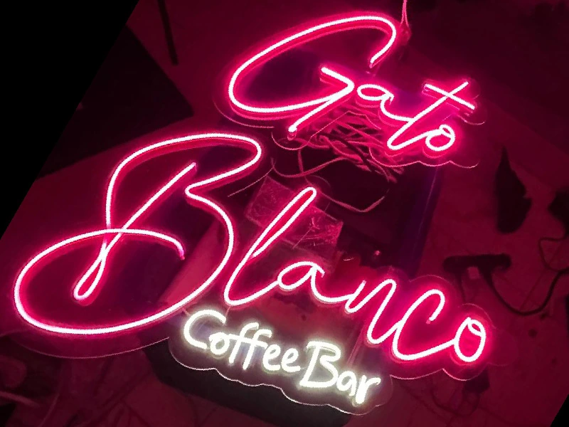 Avisos en neón flex personalizados para interiores o vitrinas.